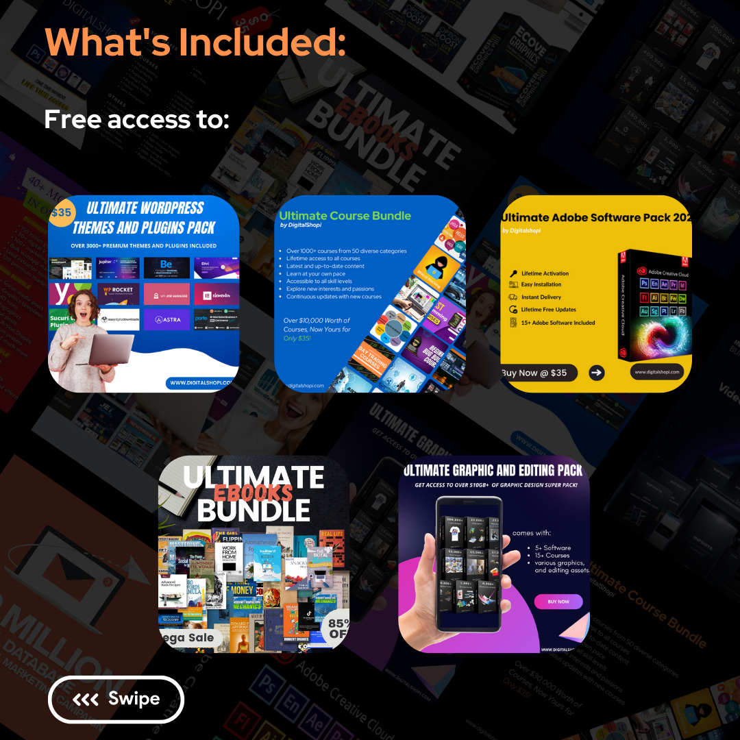 Are you tired of scouring the internet for the best courses, software, e-books, and tools to boost your skills and business? Look no further! Digitalshopi proudly presents the Premium Bundle, a comprehensive collection of premium resources carefully curated to cater to every category of people.
